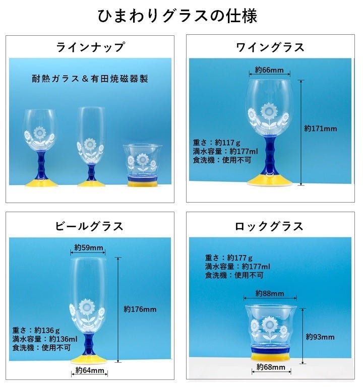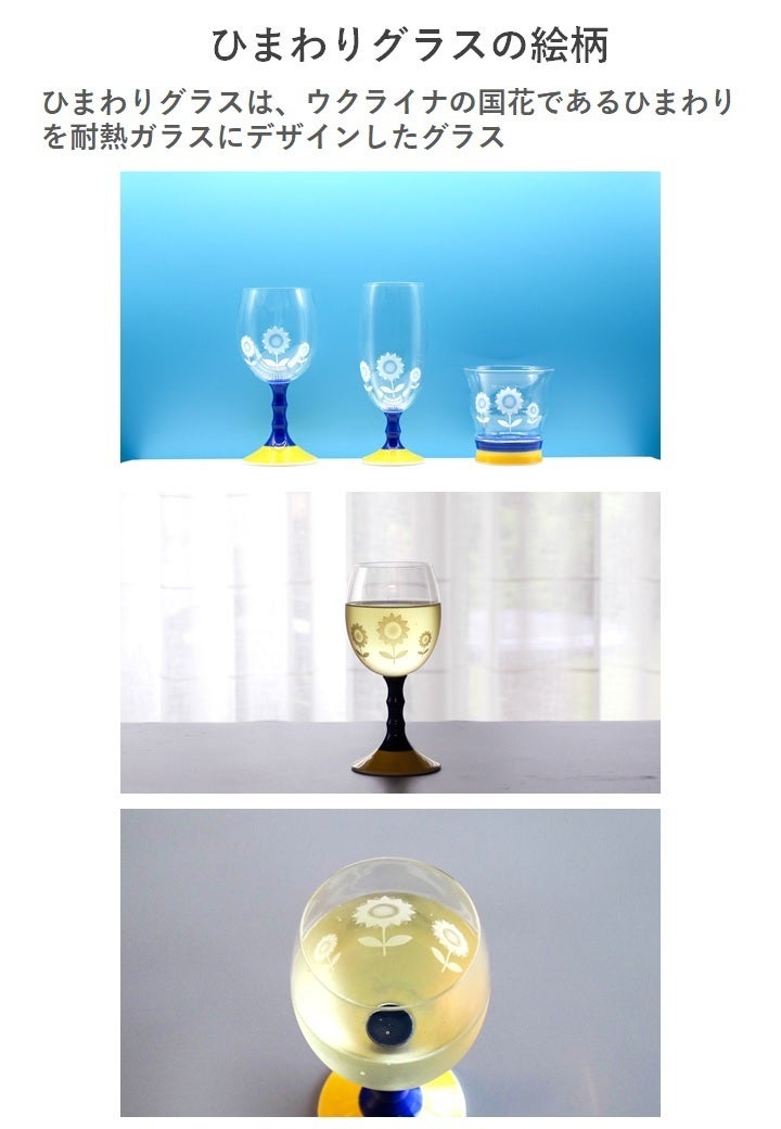 ウクライナ難民・避難民の方に「故郷を思い出したり、寂しくなったりした時に、このひまわりグラスで心を癒やして欲しい」と願った優しさを表現した商品です。