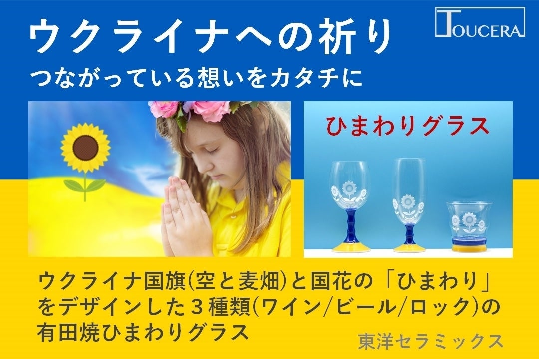 有田焼の製造販売に関わっている私たちに何ができるだろうか?、の議論を重ねた結果、コンセプトを「ウクライナへの祈り」とし、商品名を「ひまわりグラス」としました。ウクライナの方々と日本人の想いががつながっていることをカタチにした商品です。
