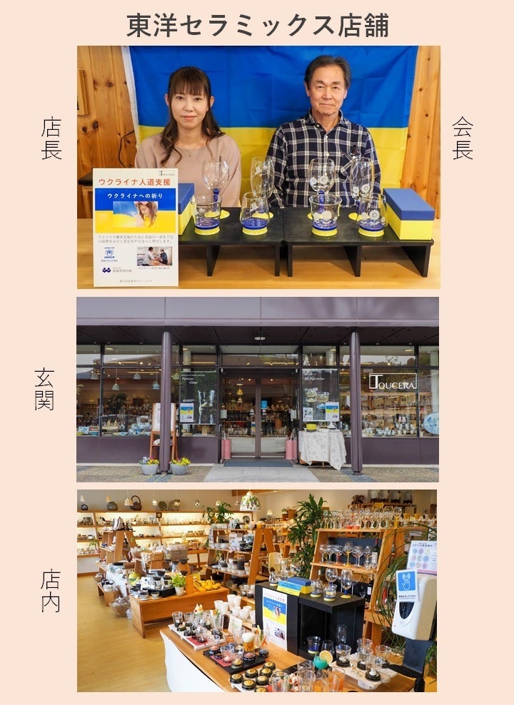 ウクライナの人々に対して、我々に何が出来るかを考えたとき、陶磁器の製造に関わっている弊社として陶磁器で難民の方々に支援をしたいと考えました。そこで考えたのが、弊社が得意とするガラスのグラスと有田焼で作った磁器脚を組み合わせたコラボ商品です。