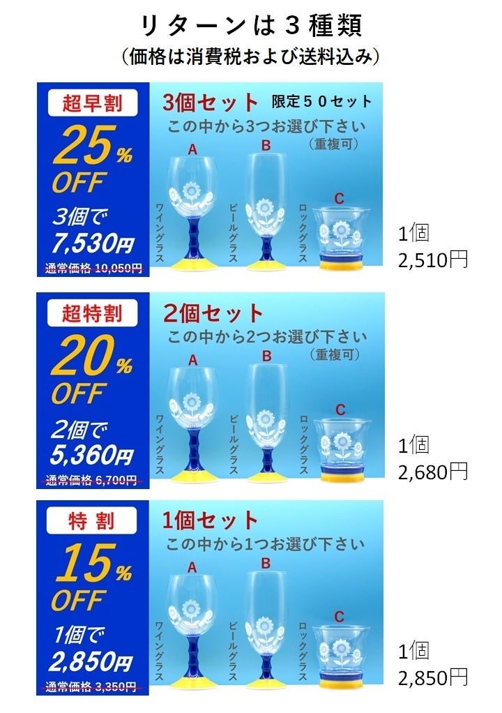 国内販売は、①CAMPFIRE、②ネット販売、③店頭販売 の3つの方法がありますが、同一価格となっています。