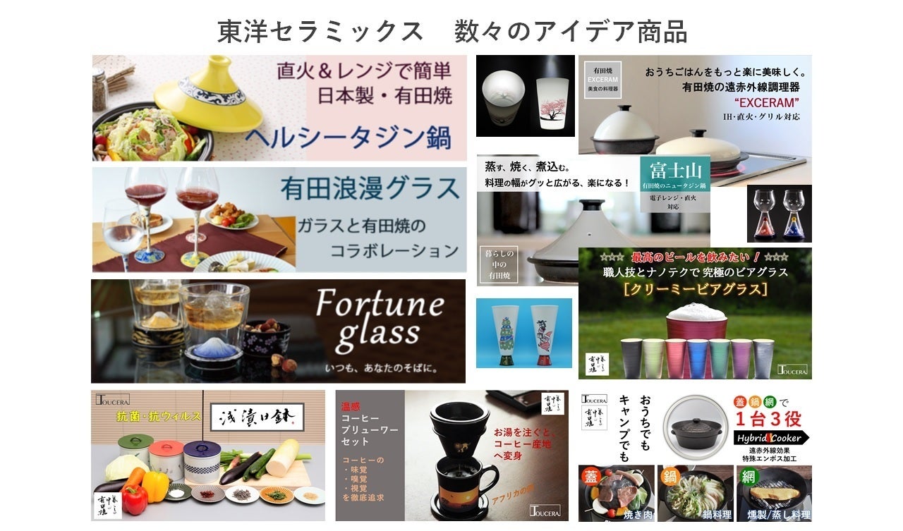 磁器の町にある弊社東洋セラミックスは、アイデアを商品化する産業基盤があり、今までさまざまなアイデア商品を生み出してきました。