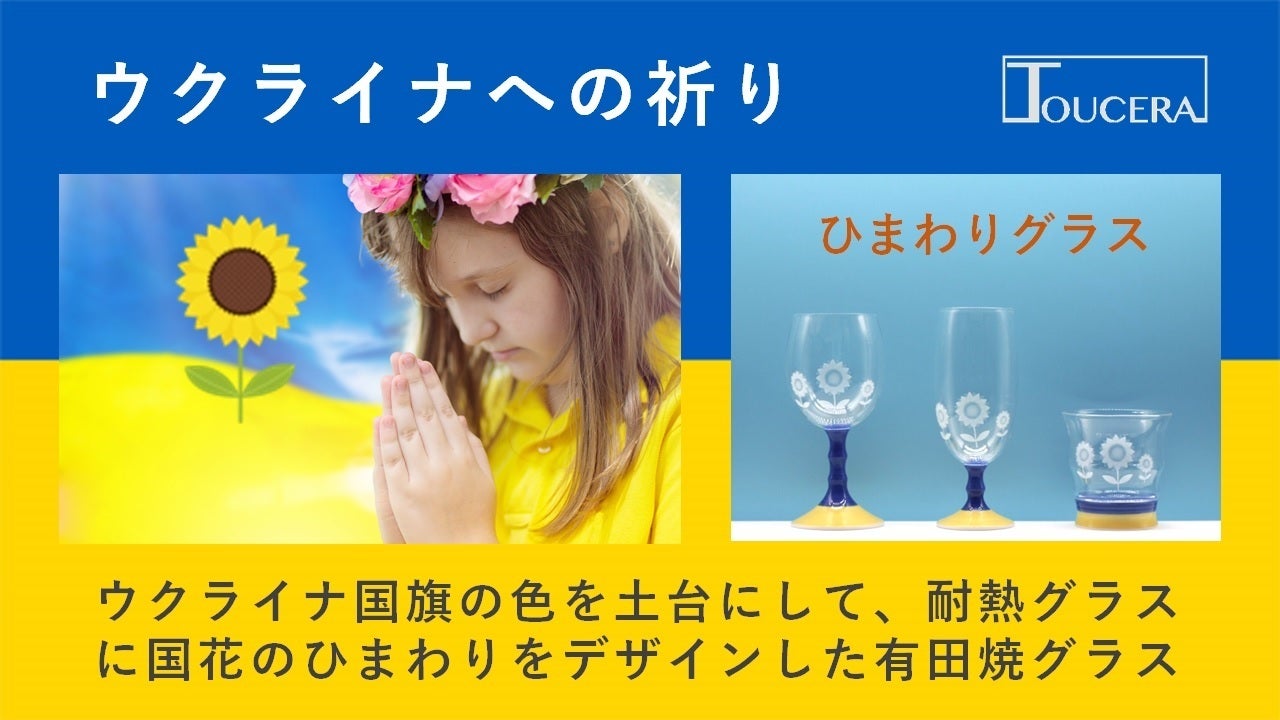 ロシア侵攻によるウクライナの状況に何か支援が出来ないかと考え、ウクライナの国旗と国花のひまわりをアレンジした「ひまわりグラス」を開発しました。コンセプトはこちらです。
