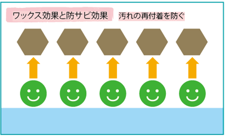 ソイガードの粒子が汚れに置き換わる作用があります。