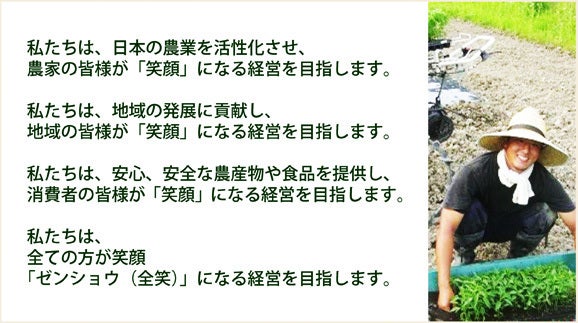 【私たちは、生産者・地域の方・消費者 すべての人が笑顔になる企業を目指しています。】