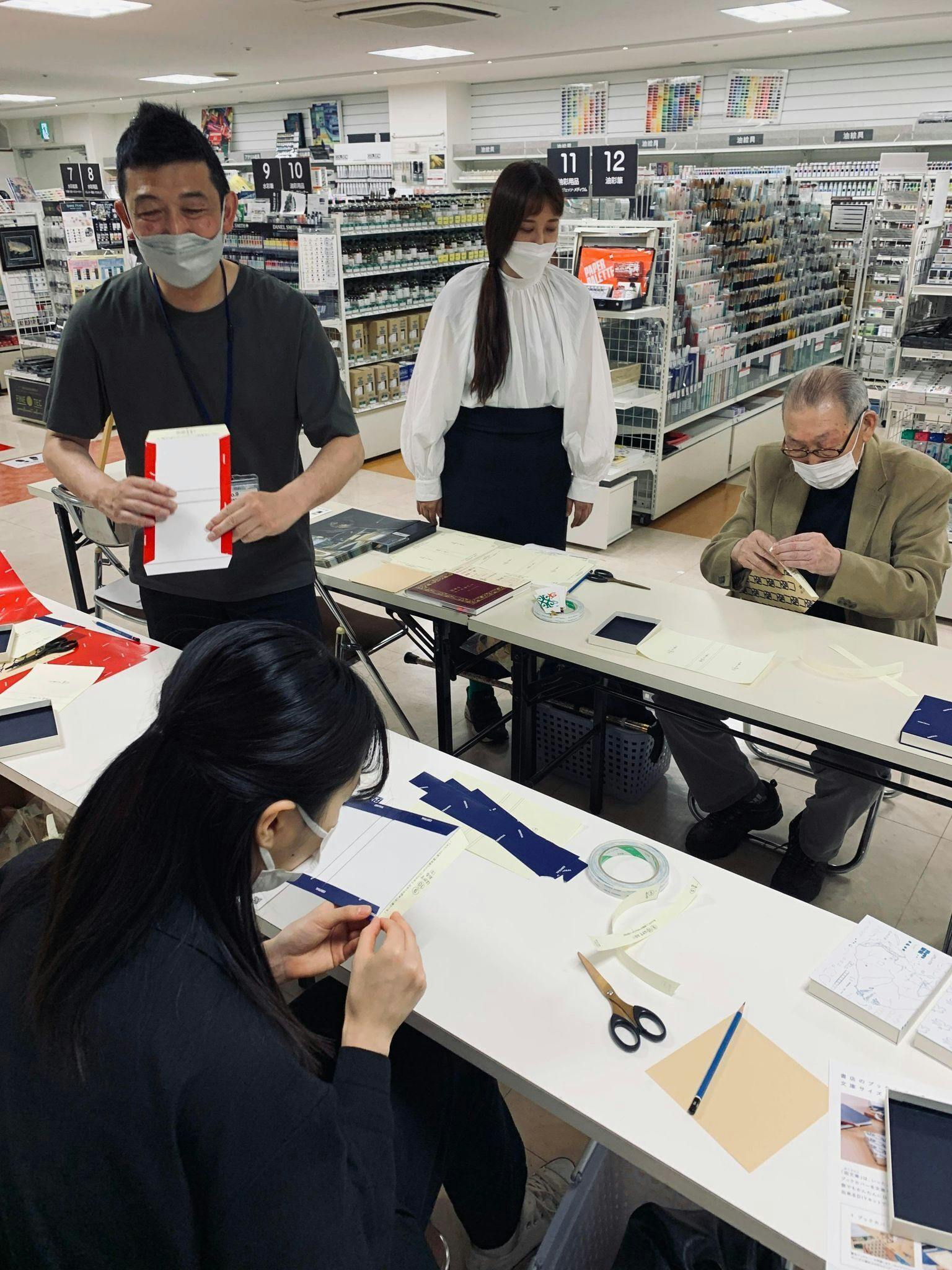 ブックカバーで文庫サイズの箱をつくる「函文庫」ワークショップを開催しました。場所は札幌市内の老舗文具店、大丸藤井セントラルさんです。