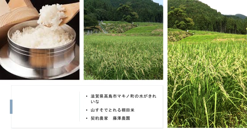 一昨年からのコロナ禍により、滋賀県内の農家さんでもお米が余ってしまっていました。「何とか少しでも商品として協力できることがあれば」と思い、5年前に開発した滋賀県産の餅米「近江羽二重」と滋賀県高島市マキノ町の棚田米こしひかりのブレンド米をおこわにしようと考えました。