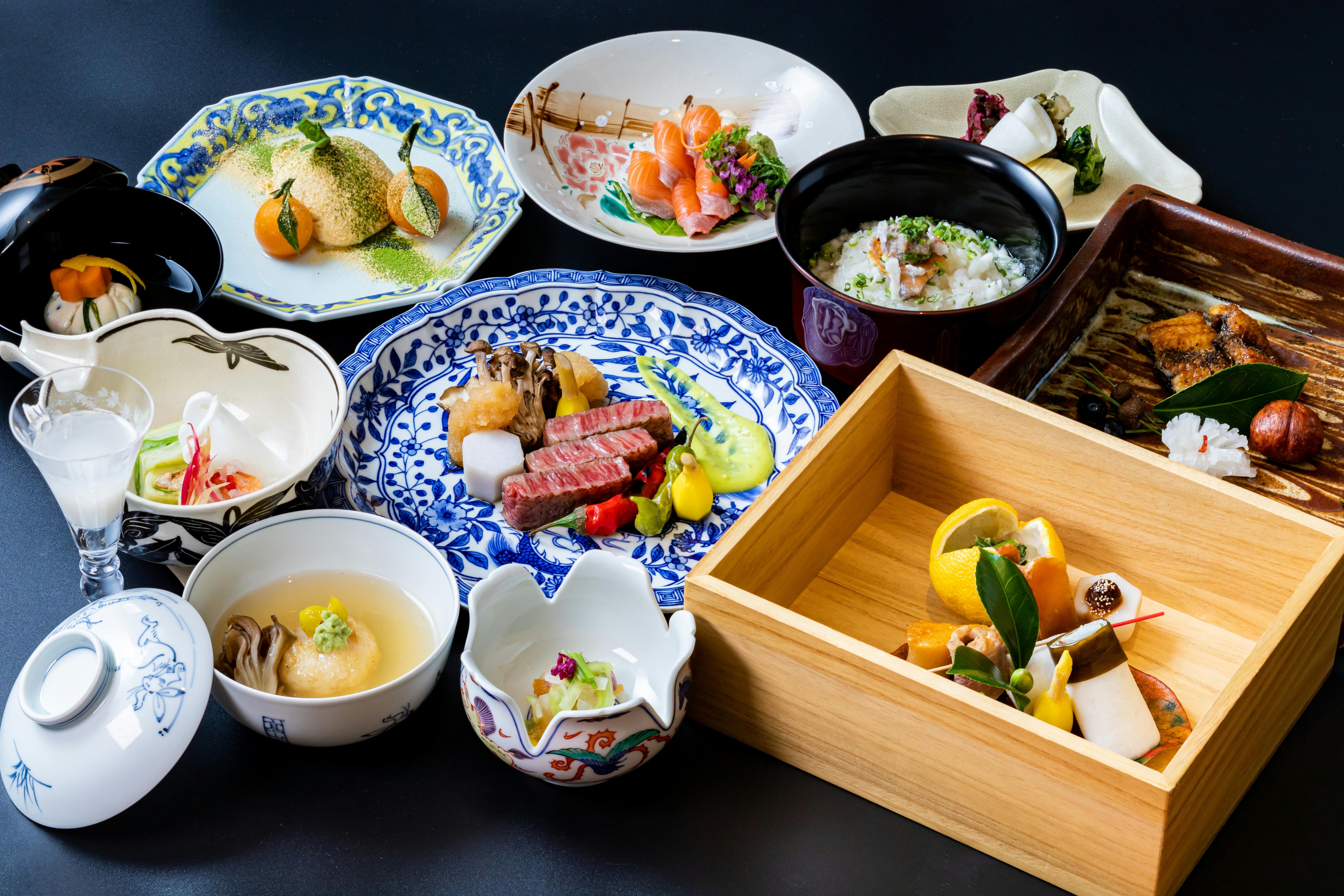 料理は伝統の技法を基本に生かしつつ、近江牛、琵琶湖の幸、発酵食品、ジビエなど近江ならではの食材を取り寄せています。また季節によって地元滋賀の旬の野菜や川魚なども取り入れており、米は仰木の有機栽培、野菜は高島郡マキノ町の契約農家の無農薬野菜を使用し、ヘルシーで体に優しい日本料理を目指しております。