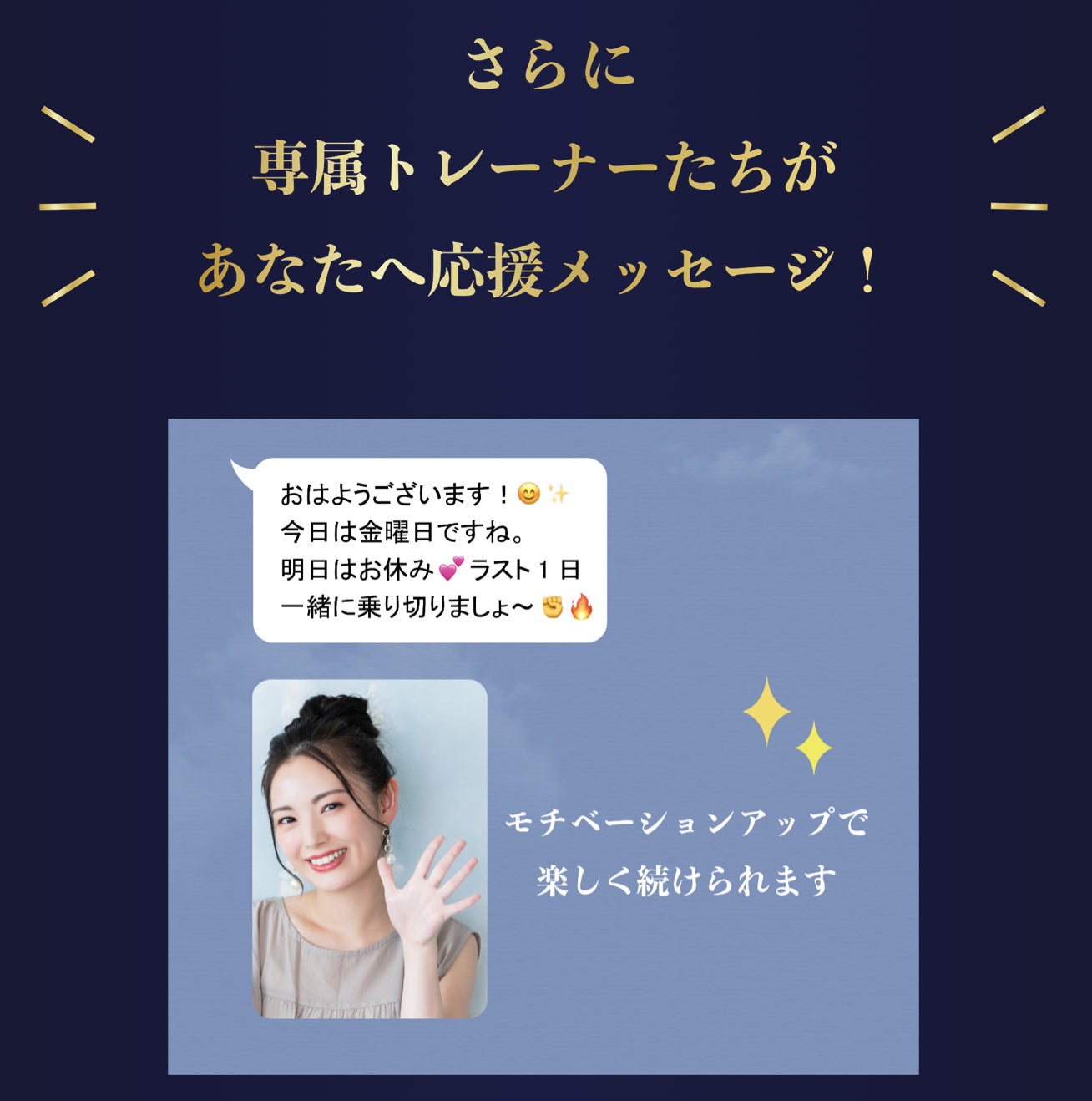 知識豊富なパーソナルトレーナーが、あなたに合ったプログラムを作成し、基礎代謝を上げて、プログラムが終わった6ヶ月後にも太りにくい体を作ります。