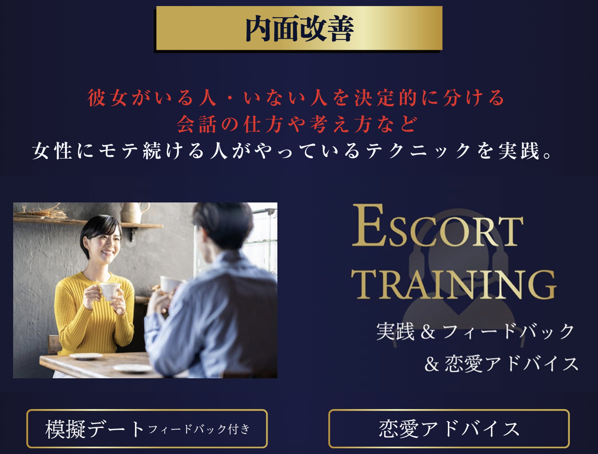 内容は恋愛アドバイスだけにとどまらず、模擬デートを通じての実践&フィードバックを徹底します。
