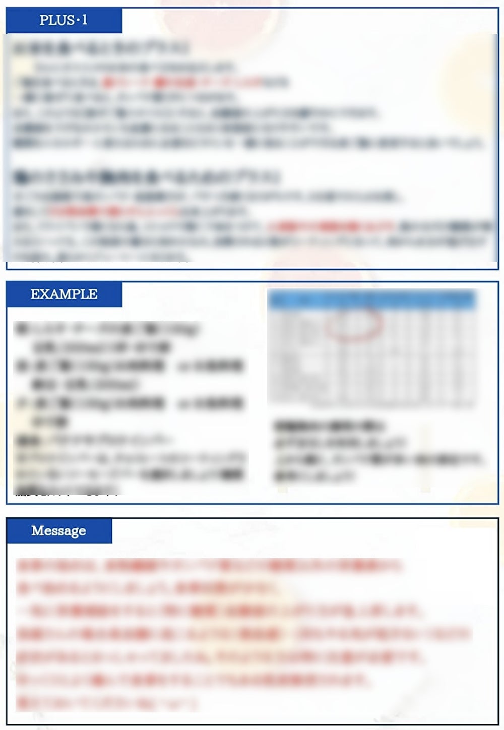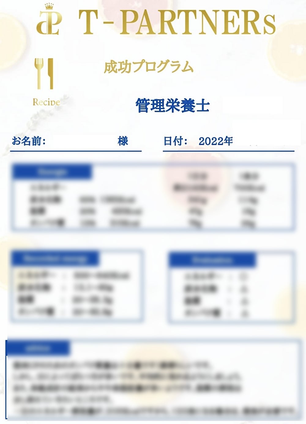 個人情報となるため内容は伏せさせていただきましたが、このように管理栄養士から、ひとりひとりの生活スタイルに合わせてきめ細やかにアドバイスさせていただきます。