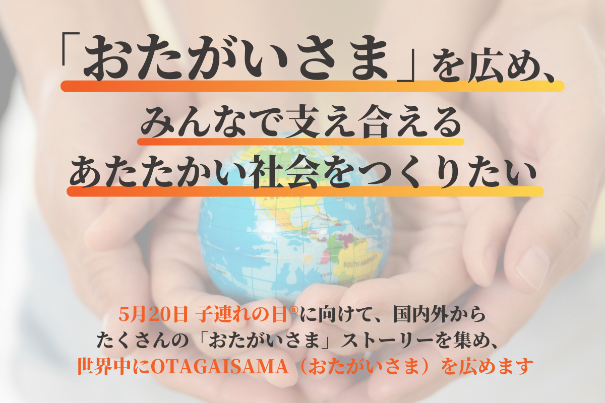 そこで、私たちは5月20日子連れの日®に向けて、国内外からたくさんのOTAGAISAMAストーリーを集め、世界中にOTAGAISAMA(おたがいさま)を広める活動をはじめることにしました。