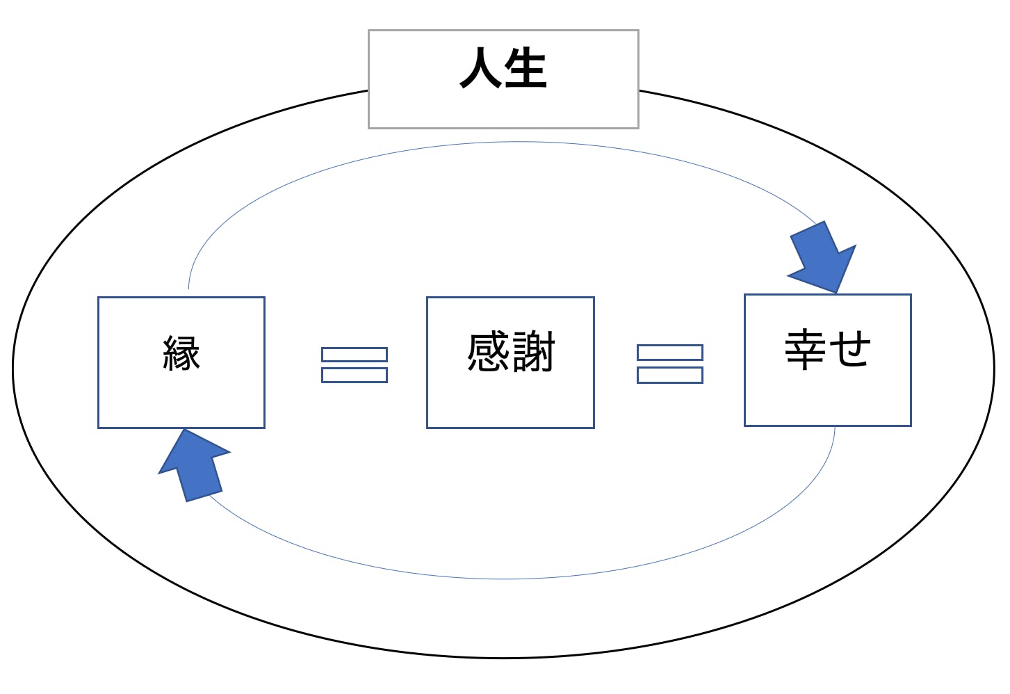 様々な出会いや経験をした後、自分なりにこれまでのことを振り返り「縁」と「感謝」と「幸せ」というものは相関関係があるのでは?と自分なりにまとめたこともありました。その図が下の図になります。(あくまで自分なりにまとめたもの)