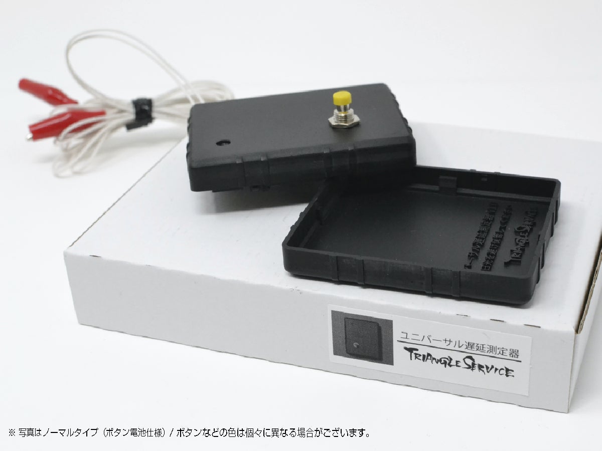 ユニバーサル遅延測定器は、かつて当社でシューティングゲームをリリースしようとした際、 ターゲットプラットフォームに無視できない遅延があったために自社ゲームのリリースをあき らめようと思っていた時、遅延を測定できる機器があれば状況を改善できるかもしれないと考え、電子部品を組み合わせ作ったものです。