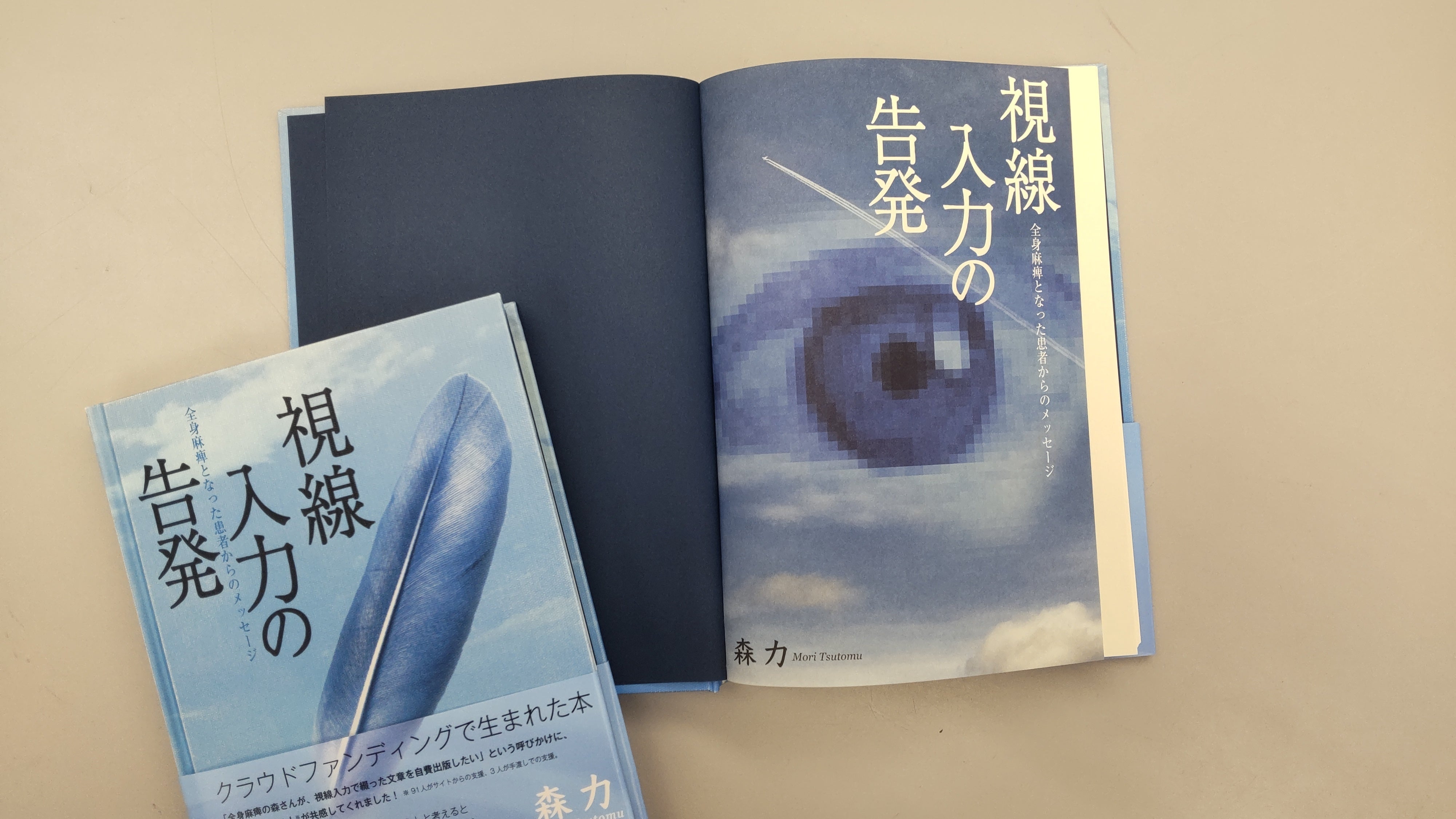 皆さまのご支援のおかげで本が完成しました。森さんが視線入力で綴った『視線入力の告発』です。デザインは協力者の亀田敏美さん、印刷は㈱アイワードさん、製本は石田製本㈱さんにお世話になりました。一人でも多くの方々に森さんの思いが届くよう、このサイトやhttps://www.tailwindsupport/https://www.facebook.com/camedia2で情報発信を続けていきます。引き続きどうぞよろしくお願いします!!!「森さんの本を出版する会」代表 山下和子