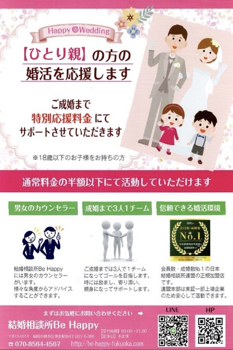 はじめまして!福岡の結婚相談所Be Happyです。