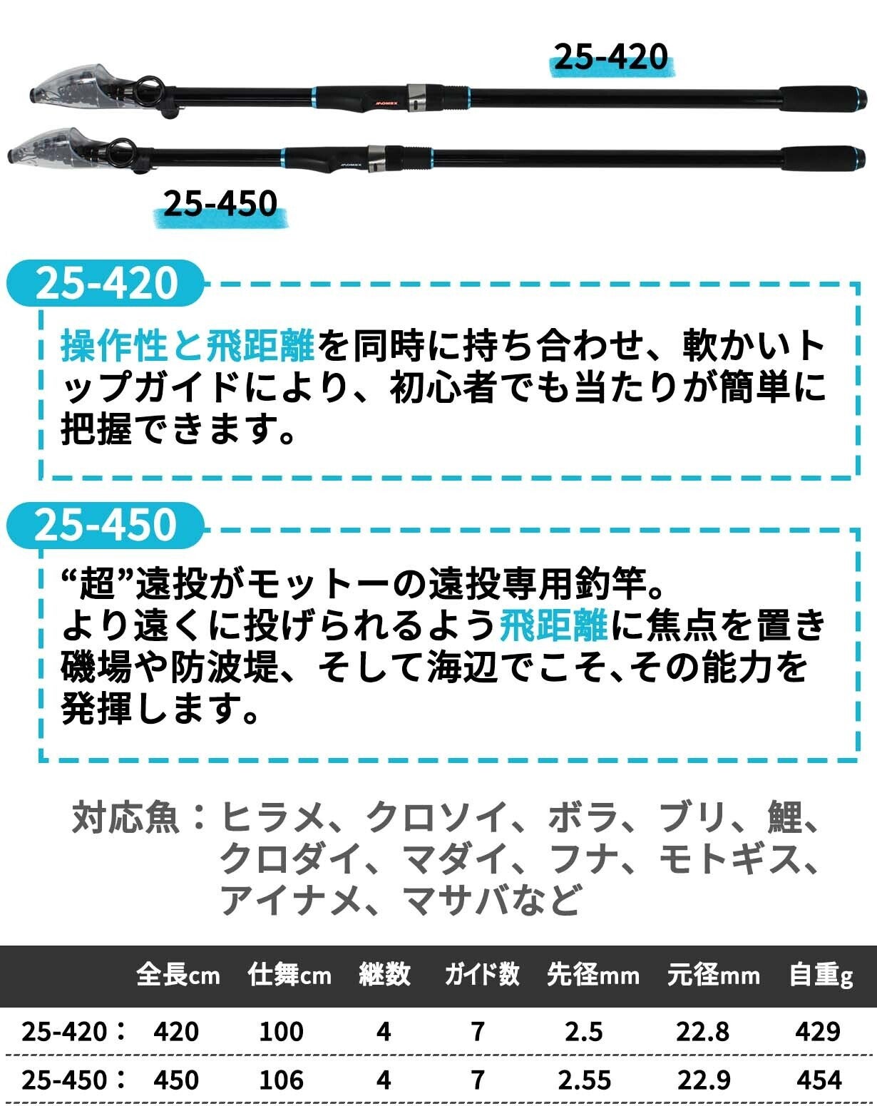 ・遠投釣竿:カーボン+その他