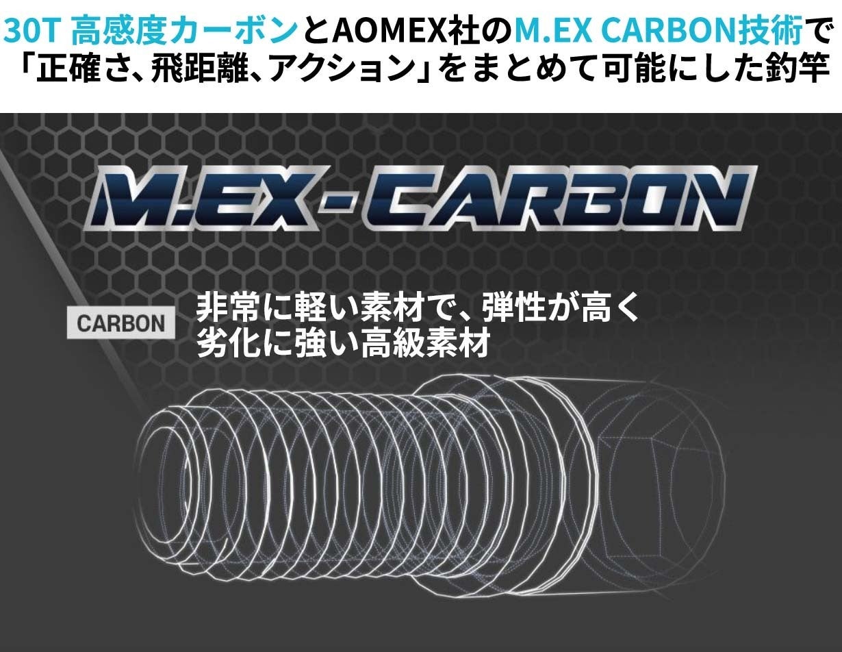 A:カーボン含有量が多ければ多いほど弾性があり、軽く、手に伝わる感覚を強く感じられます。 釣りは手で味わう感覚が重要なだけに、その魅力を感じるためにはカーボン素材がオススメです。