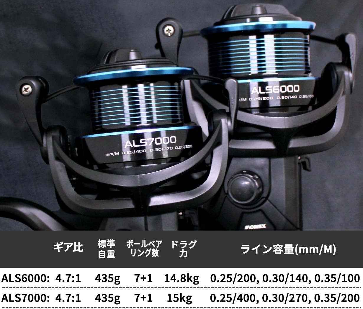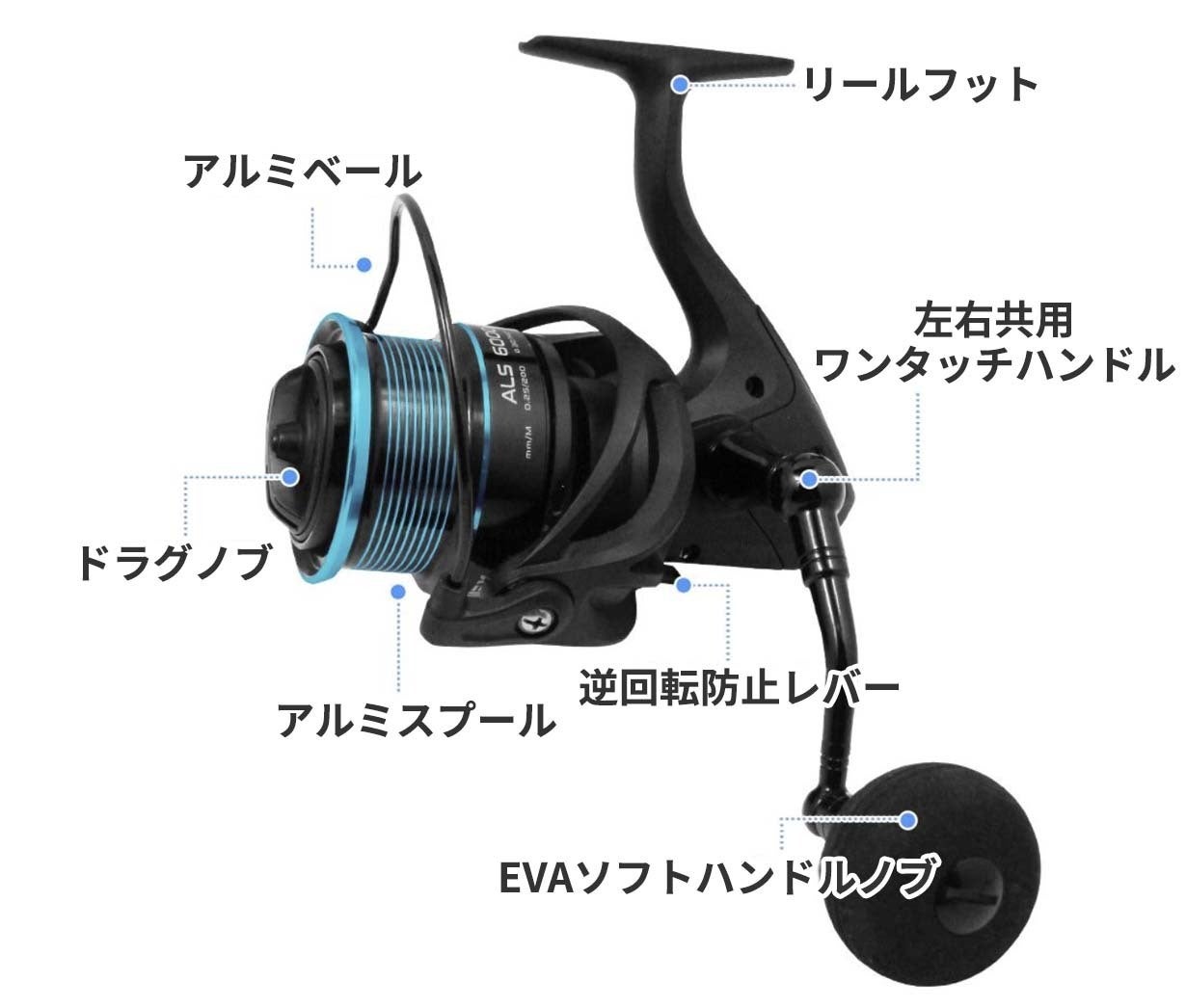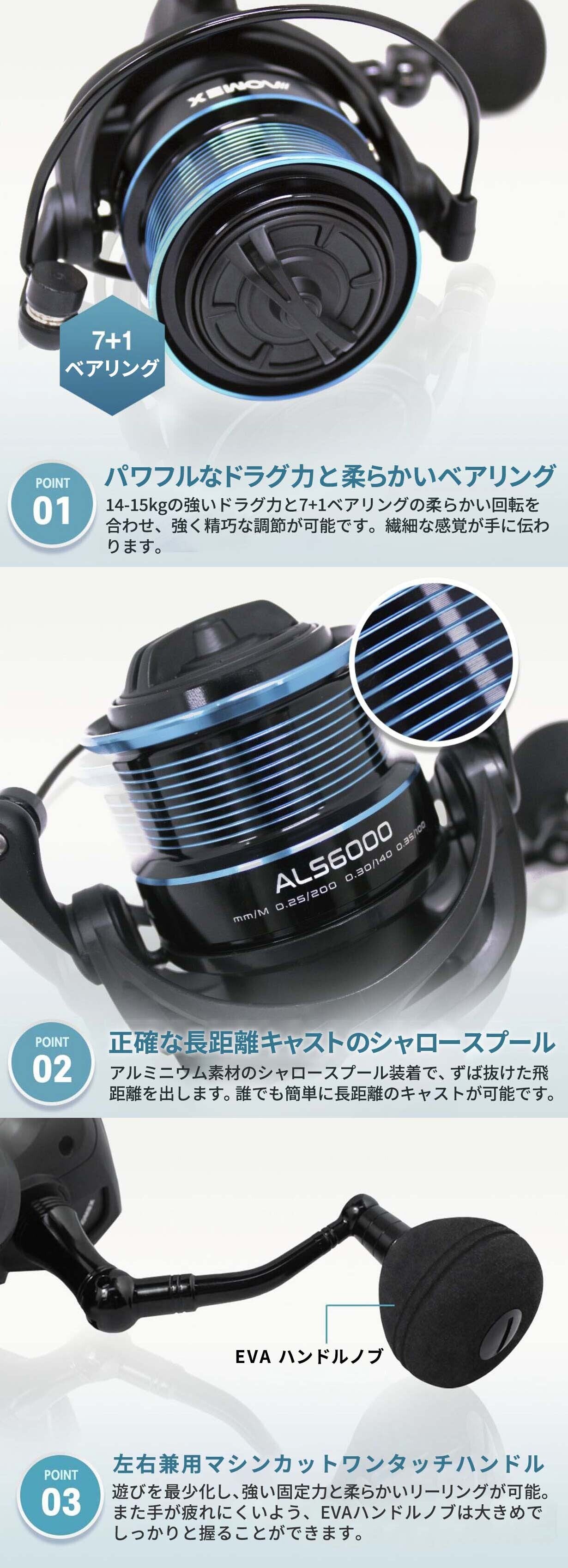 ・スピニングリール:グラファイト+アルミニウム