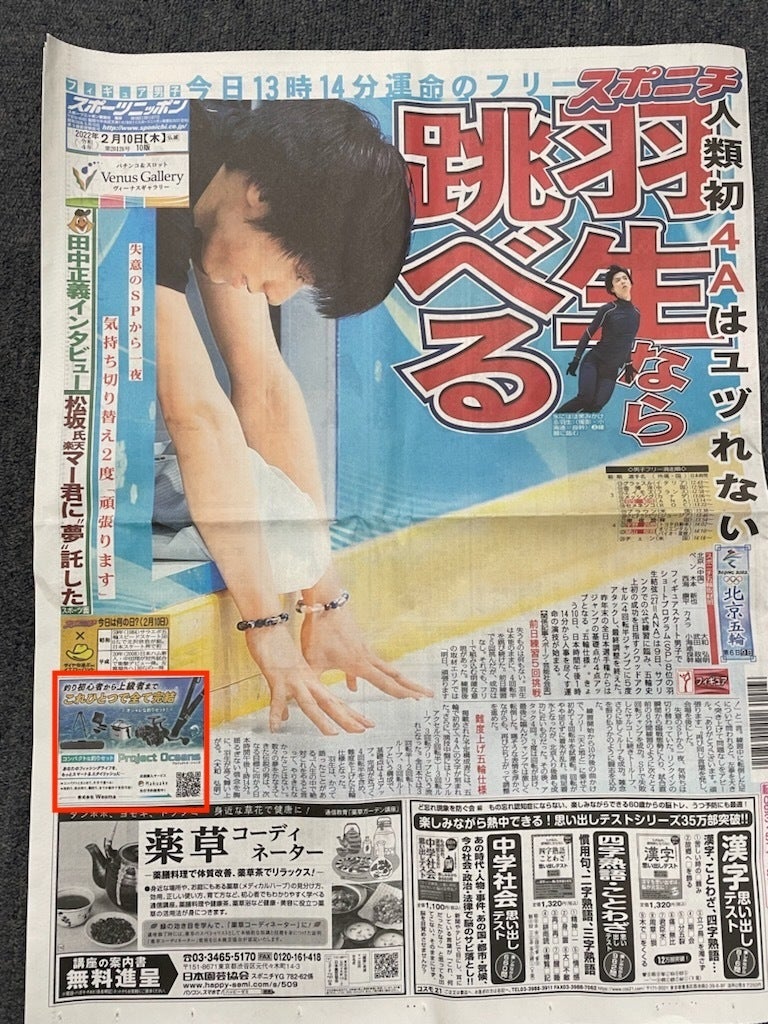 ▼スポニチの一面にも掲載されました!