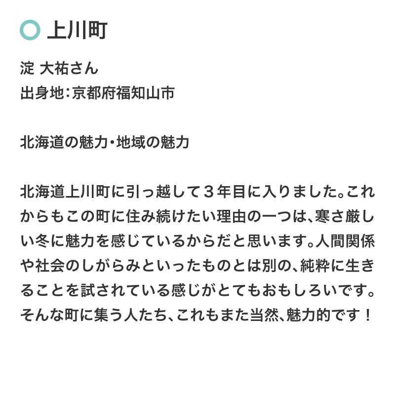 新型コロナウイルスの影響により、北海道はここ数年、大きな変化を遂げています。しかしながら、それ故に強くなった北海道の姿、その中で生まれた沢山の試み、より一層魅力に輝いた、いまの故郷の姿を自分も発信していきたいと思います。私、上杉 周大は「MouLa HOKKAIDO」の活動を熱烈応援致します!