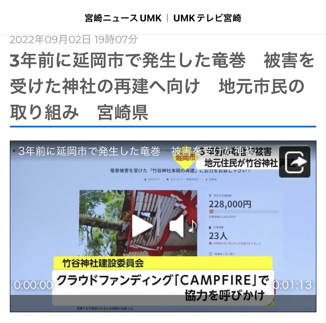 2022/08/27 19:45地元の新聞社に神社の状況説明と活動の報告に行ってきました!クラウドファンディングも残り34日‥目標までまだまだですが、ご支援どうかよろしくお願いします。 もっと見る