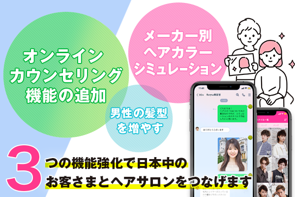 また、美容室への訪問を控えている常連のお客さまへのアフターカウンセリング等に活用することで、外出自粛を要するコロナ禍でも、関係性を深めていくことができます。
