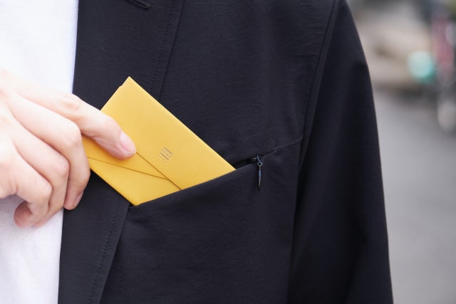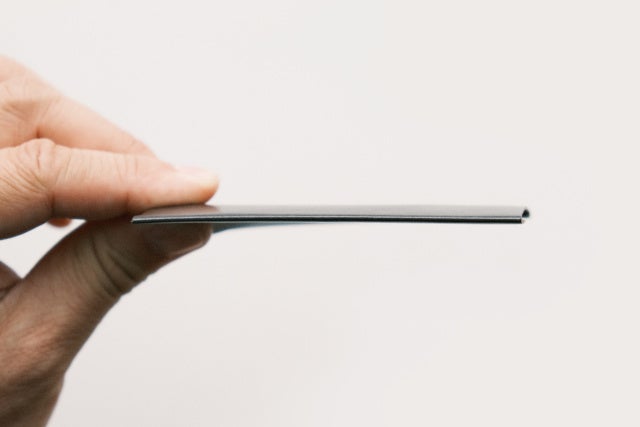 紙のような本革を極限まで薄くした結果、レザーの薄さはわずか0.5mm。本体もわずか1.5mm。どこにでも収納できる紙のような薄さです。