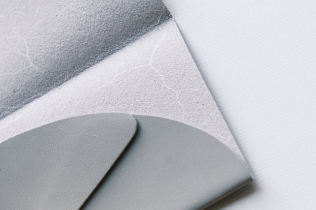 国内のタンナー・漉割職人の手を経て生まれた紙のように薄い革を使用。そのままだと柔らかくて整形できない革を、特殊な裏処理加工を施すことで、パリッと張りのある上質に仕上げています。