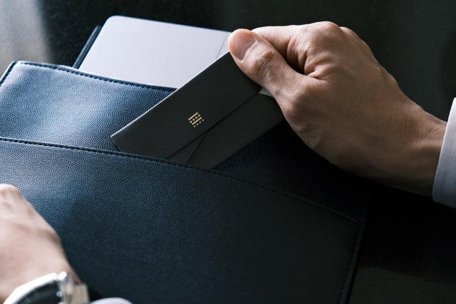 リモートワークが多くなって直接誰かと会うことも少なくなってきたので、名刺入れを持ち歩くことを忘れたりすることがあります。けど、入館証とかの中に入れておくと咄嗟に必要なときにキレイなまま出せるから便利です。薄くて小さくても本革で、名刺も角が折れたりせず、汚くならないので重宝しています。