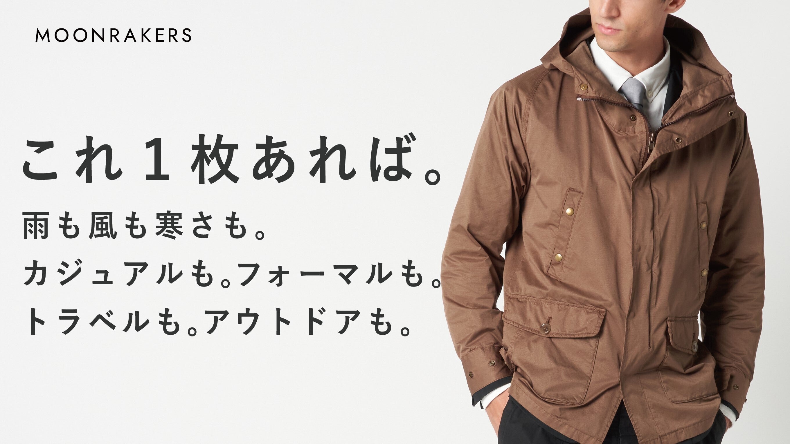 高い機能性と利便性、美しい質感、そしてロングライフでサステナブルな高耐久性を兼ね備え、ジェンダーレスで、誰をも美しくする。「これ1枚あれば。」雨にも風にも寒さにも、アウトドアにも、トラベルにも。カジュアルにも、フォーマルにも。