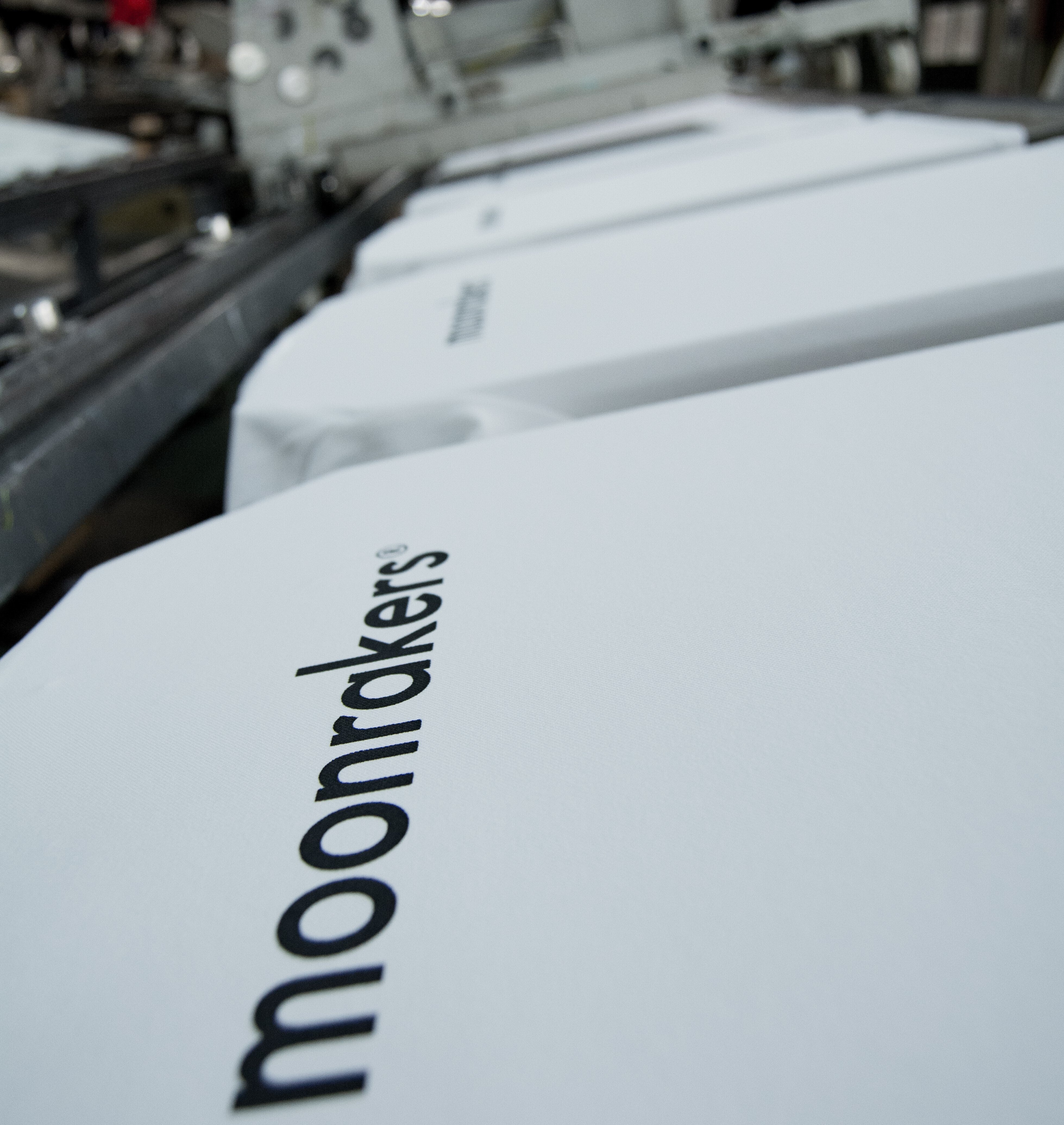 「MOON-TECH®」を応援いただいたみなさまいつも大変お世話になります。本日はお待たせしておりましたプリントTシャツの配送がスタートすることのお知らせです。今回の「MOON-TECH®」プロジェクトにて、わたしたちプロジェクト”MOONRAKERS”は、みなさまよりたくさんの喜びをいただくことができました。そしてそのたくさんいただいた喜びの中でもトピックスの一つだったのは、「MOONRAKERS」のロゴの入ったプリントTシャツに、多くのみなさまから応援をいただいたことでした。「MOONRAKERS」というプロジェクト名は、「届かぬ理想をつかもうとする馬鹿者たち」という意味があります。先端技術と日常生活をダイレクトにつなぎ、快適で便利で美しい「ミライの生活」をみなさまとともに創造する・・・そんな見果てぬ夢を追いかけるわたしたちプロジェクトの本質を表す言葉であり、このプリントTシャツはその象徴のような商品だと考えています。ようやくその商品の生産が進み、今週末よりみなさまに配送をスタートすることを大変うれしく感じています。たいへんお待たせいたしましたが、今しばし、到着を楽しみにお待ちいただければ幸いです。なお、このプリントは京都の「アトリエ・コスモス」さまで生産を実行いただいています。日本が誇る繊細で精度の高い技術をもつすばらしいプリント工房です。単純なプリントに見えるかも知れませんが、過剰なくらいの機能性を付与したこのTシャツにプリントを行い、高い品位と耐久性を両立することは簡単なことではありません。「アトリエ・コスモス」さまには、数十回にわたる試作と検証へのご協力を快諾いただき、そして自分たちの想像をこえる精度での対応をいただきました。こだわりの強い自分たちを上回る”プリント”対する強い想い。その妥協を許さぬ姿勢にはほんとうに感謝と尊敬しかありません。まさに画竜点睛。このプリントが「MOON-TECH®」を更に輝かせてくれます。素材も日本、縫製も日本、そしてプリントも日本。メイドインジャパンの粋を結集した「MOON-TECH®」プリントTシャツ。みなさまに着ていただけるのをメンバー一同、心より楽しみにしております。プロジェクト”MOONRAKERS”