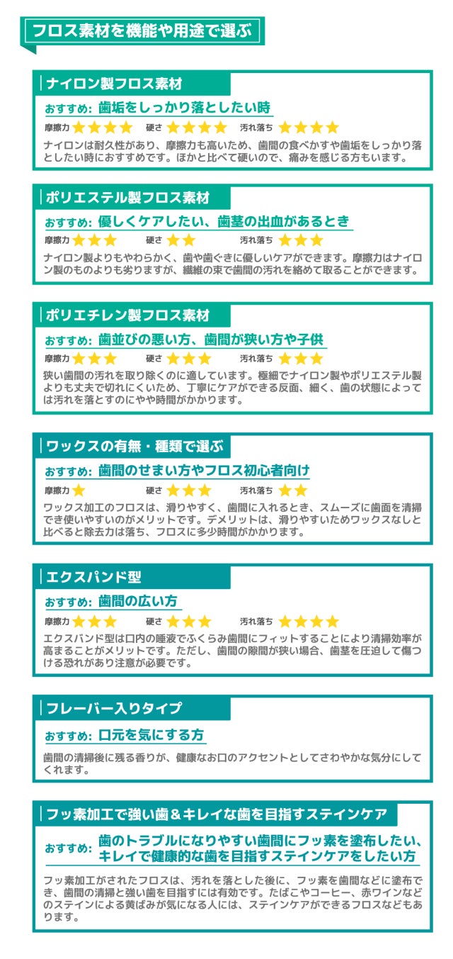 最適な用途のフロス素材が選択できます。