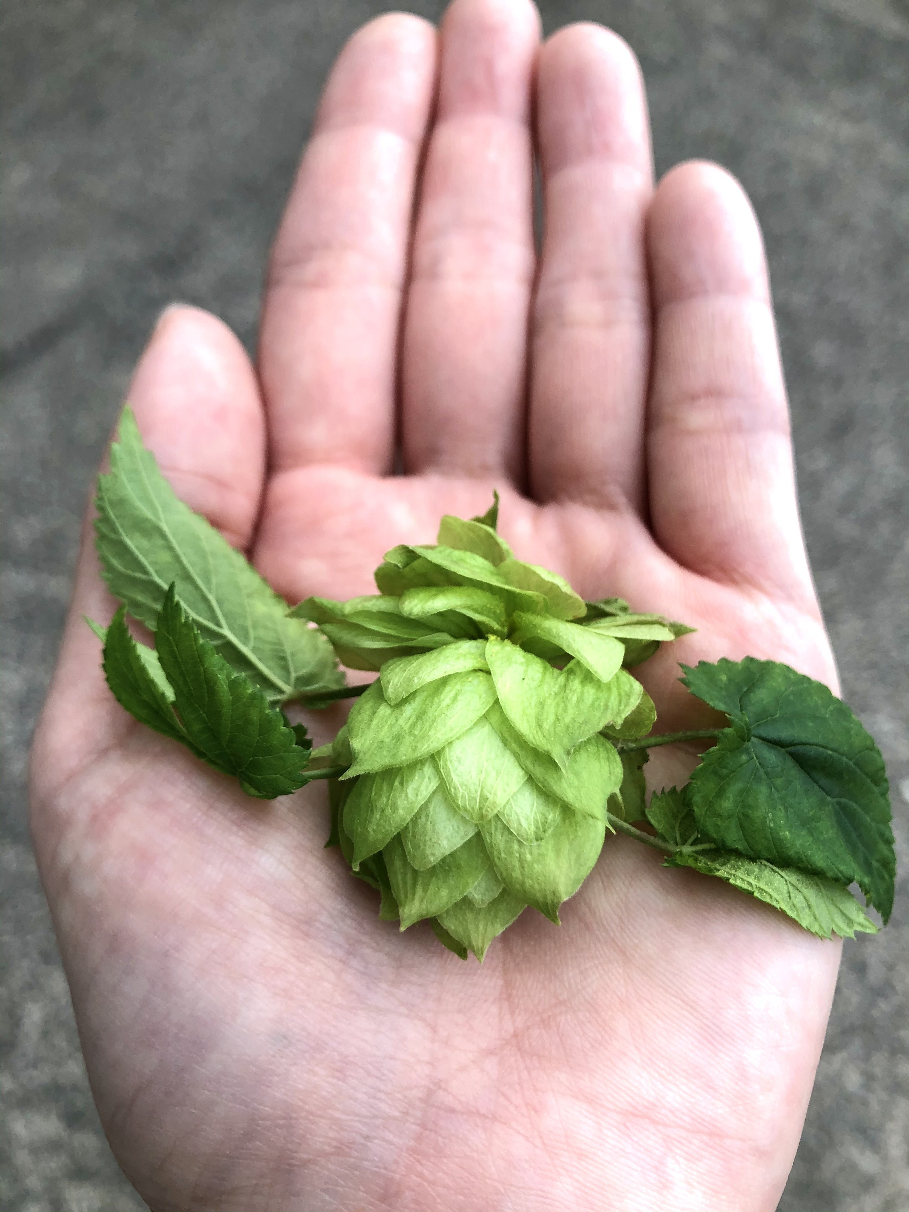 毬花のビールにも使用されている自家製ホップのカスケード、センテニアル、チヌークを含む、5~6種類のホップ摘み体験が可能です。おっ、これは!! と、フレッシュなホップの中にビールの香りを発見する体験は興味深いですよ!