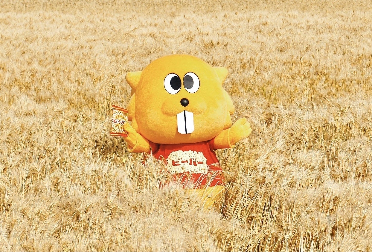 「 麦畑は最高に気持ちいいですぞ〜! ボクも大好き!ʕ ᵔꎴᵔ ʔ 麦畑でビーバー食べまっし! 」