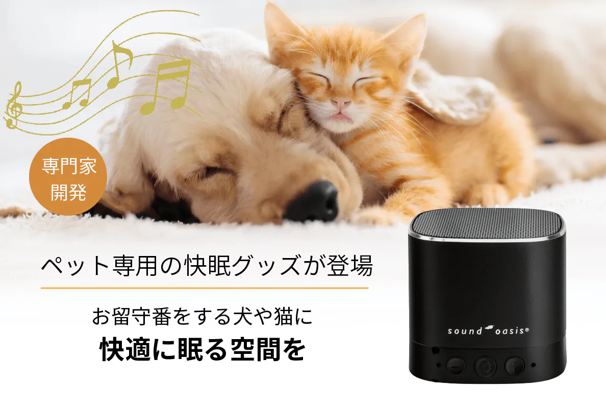 わんちゃんや猫ちゃんのために医師が開発した楽曲を搭載したペット専用の快眠グッズスピーカー!