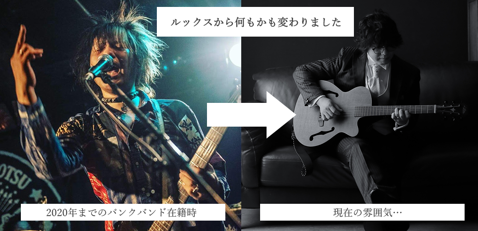 僕が選んだ方法はパンクロックではなく、自分のもう一つのルーツである「(薄暗い照明でも演出できる)雰囲気のある音楽」を奏でる事。それであれば成立するのではないか!と思って楽曲制作を開始しました。