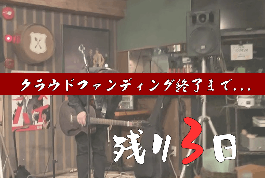 2022/05/30 00:00いつも応援ありがとうございます。ハクイダイスケです。現在挑戦中のクラウドファンディング終了まで残り1日。24時間となりました!本当にありがとうございます、ここまで来たらマジで達成したい!!!もはやここまでくると、何を言おう?という状態なのですが。ぜひアピールしたいリターンであり、未来の自分の活動の部分であります。もし、まだご支援いただいてなくてその気がある方、まだ財布にほんのちょっと余裕があって追加支援してやろう!というかたはこれらを候補に挙げて頂けると嬉しいです。■8月13日(土)自主企画・レコ発イベント淡路SlowBirdで行うイベントのチケットです。実券はないのですが、ご来場権となります。急ぎ、共演者情報を発表しようかなと思いましたが、実は(今決定している)出演者3組は全員ご支援いただいたところ。「支援いただいたから」出ていただくわけじゃなくて、「出てほしかった人の中で支援していただいた(この企画に参加してくれた)方に声かけをさせて頂いている」という事になります。そういう方々の名前を使って、最後の支援を募ろうっていうのはちょっと違うかなと思って、あえてまだ公開はせずに、6月入ってから詳細を出そうかなと思っています。※当日は入場時に別途ドリンク代¥600円が必要です。出演者:ハクイダイスケを含む5組予定(現在4組確定)チケット代:前売2,500円 当日3,000円 ※予定※別途ドリンク代がかかります。時間:18時スタート※予定■7月開催、堺東オレンヂドロップにて先行試聴会&オフ会ハクイダイスケ行きつけのお店、堺東オレンヂドロップ。酒が飲めないのに、一時期は仕事帰りに週3、週4ペースで通っていたお店。(今はリモートになったので少し頻度下がったけど…)今回、画像のバーのマスター潤さんを含んだ形での先行試聴会&オフ会となります。潤さんという方は、バンドの先輩でありながら元ライブハウス店長も経験しているので、色々な意見をお持ちです。アレンジ段階から相談したりして、色々な意見をいただき、相談にのってもらっていました。もはや「関係者」であります。そういう先輩を交えて裏話をしつつ、音源発表の前にみんなで聞こう!というものです。自分の大好きなお店&人&堺東という街を知ってほしい…そういう気持ちもあってのリターンです。7月の7日・14日・21日・28日(全て木曜日) という候補を出していますが、土日含めて支援者さまの要望に合わせるつもりです。ぜひ宜しくお願いします。予定時間20時~22時半まで予定。1ドリンク付き価格です。交通費は各自のご負担となります。1杯目以降はキャッシュオンでお願いします。※南海高野線「堺東」駅からすぐ。堺東商店街内 ■泣いても笑っても、あと24時間最後まであきらめずに、頑張ろうと思います。明日30日の最終の時間である23時~24時の間、スタジオをとって配信を行う予定です。⇒ツイキャス(よかったらフォローしといてね)退室・片付けの時間もあるので0時まではやれませんが、ほぼ終わりのタイミングを応援してくれたみなさんと迎えたいなーって思ってますので、よろしくお願いします。頑張ります!!!!!!!! もっと見る