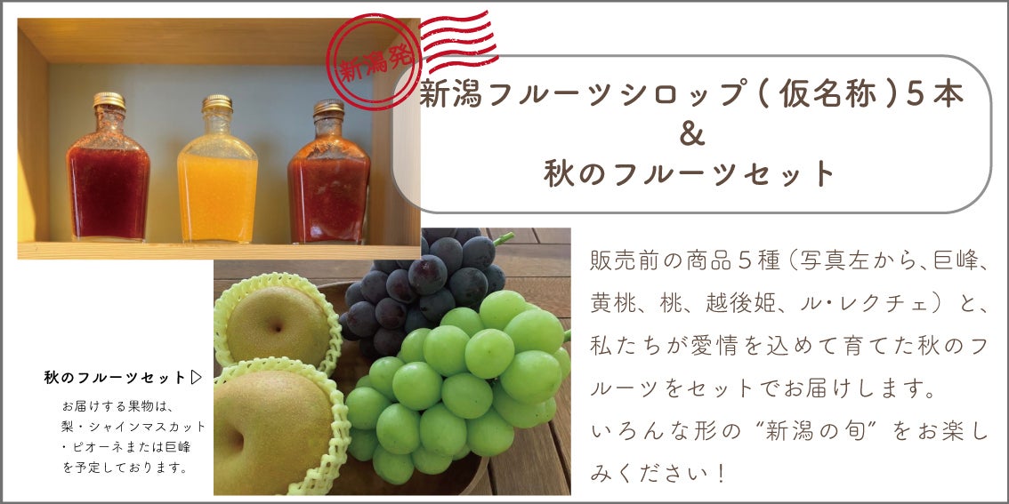 今回のフルーツシロップの開発・販売を通して、今までの方法(園まで足を運んでいただく)以外にも、新潟のフルーツの魅力を“体験”していただける場を作りたいと考えています。