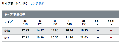 大体ウェアは長袖と半袖、どちらも承っておりますが、サイズ表をご覧ください。