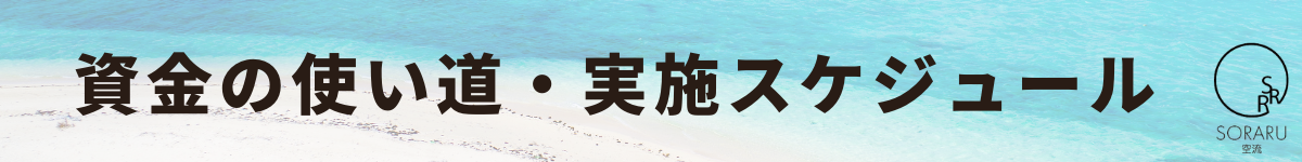 今回のクラウドファンディングで協力いただいた資金は、キャンプファイヤーの手数料など諸費用を除き、宣伝・広告費用、外観の整備費用(SORARUの植木などの費用)に使わせていただきます。