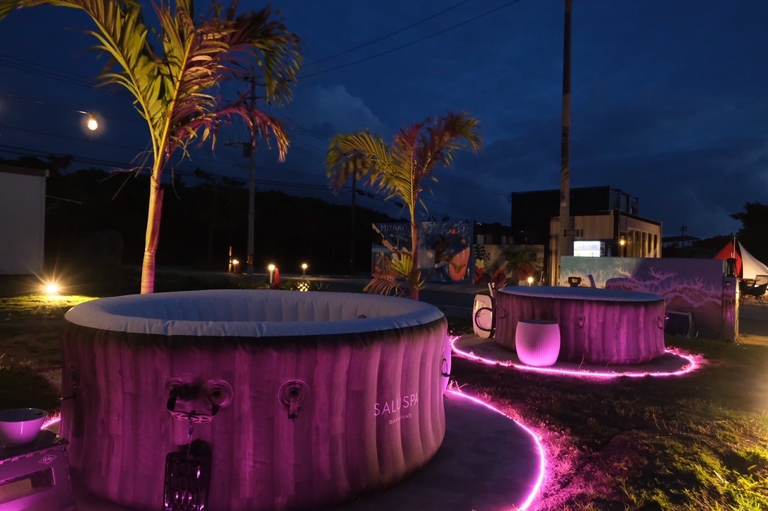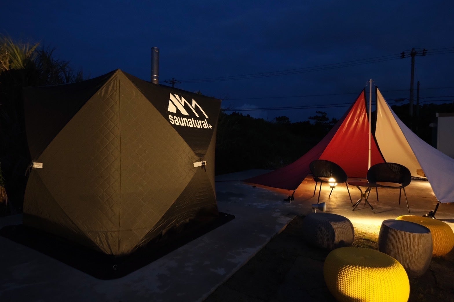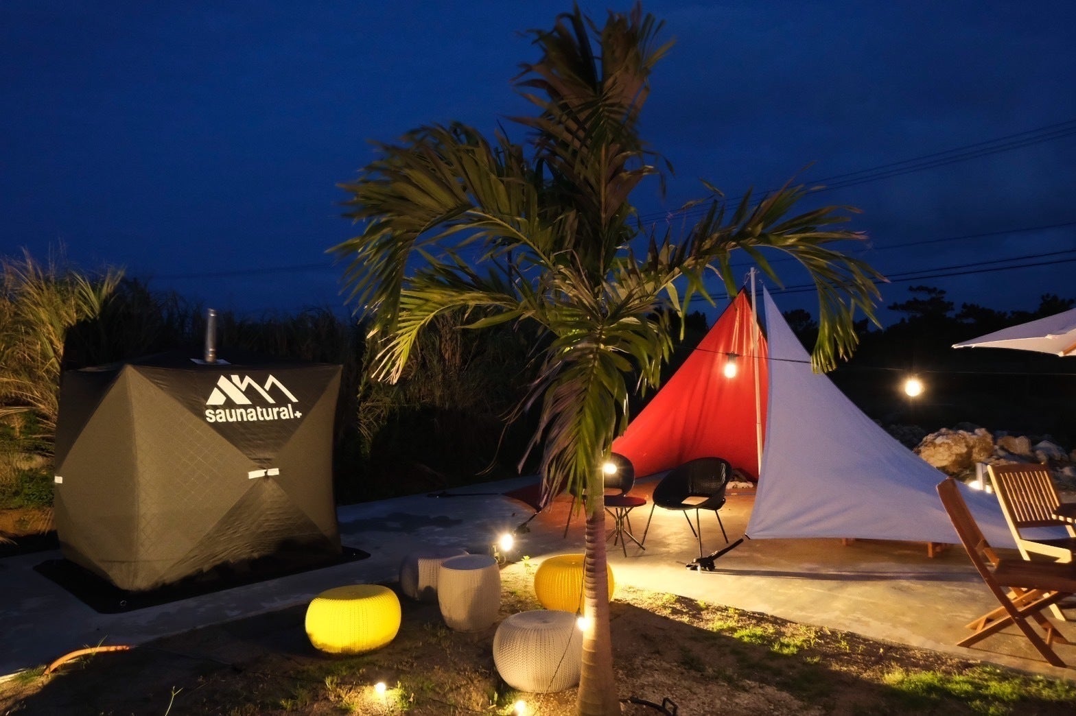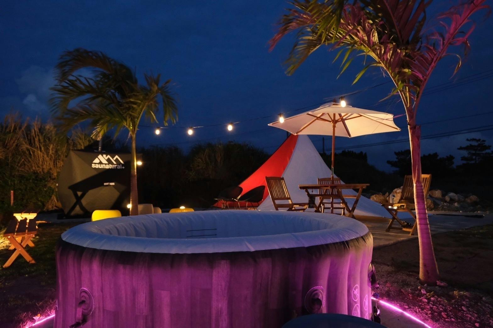 テントサウナやジャグジーで疲れを癒しながら、明日の計画を立てる。しかも、宮古島の心地いい風を身体いっぱいに感じながら……。