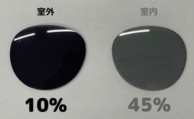 紫外線の量が少ない場所では、レンズの色が変化しません。そのため、フロントガラスに紫外線カット機能が備わっている車の運転時や、紫外線の量が少ない場所で着用した場合には、レンズの色が変化しません。