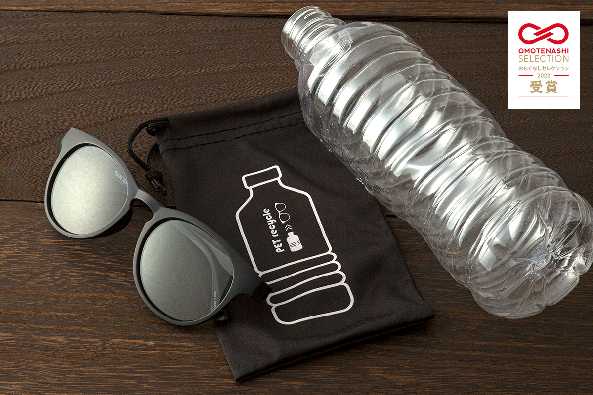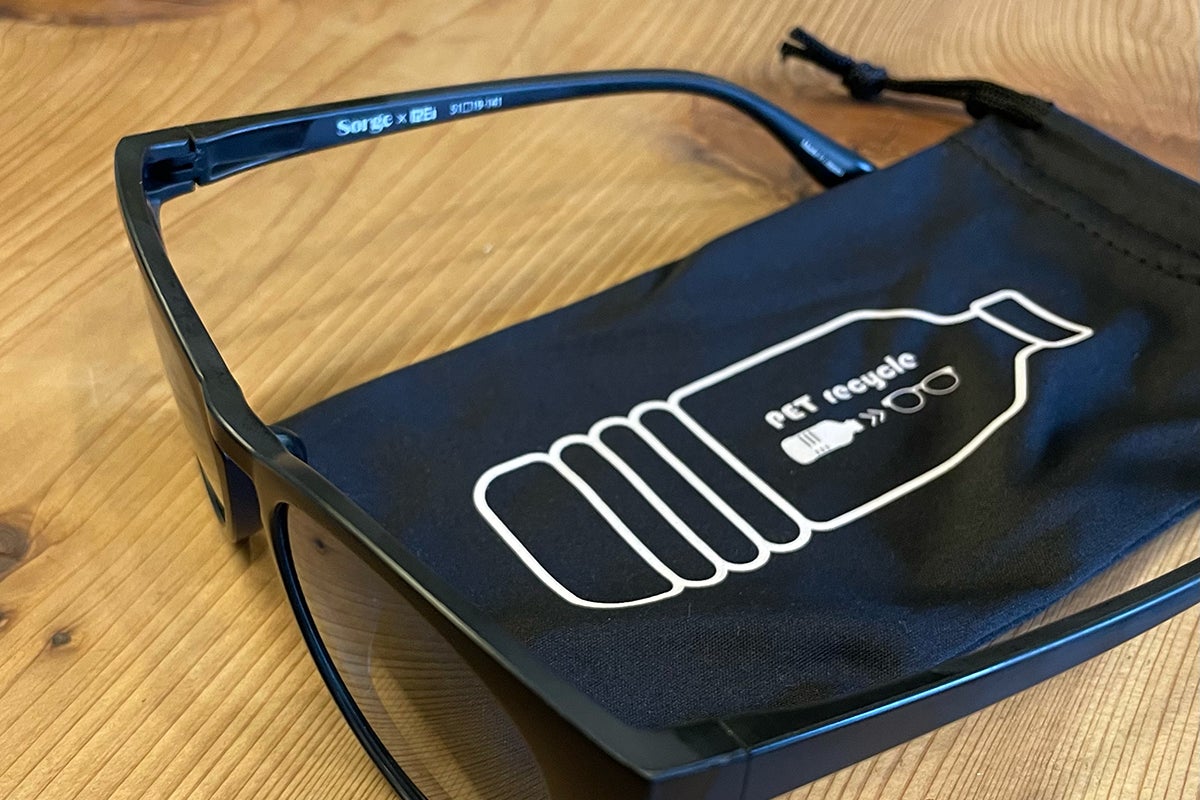 「Sorge×Re:」のコラボサングラスは、伝統の職人技と先進技術を持つ日本製めがね産地「福井・鯖江」で生産しています。フレームには、100%PETリサイクルを原料とし、廃棄されたペットボトルを再利用したPET樹脂が使われており、環境に優しい素材を使用しています。