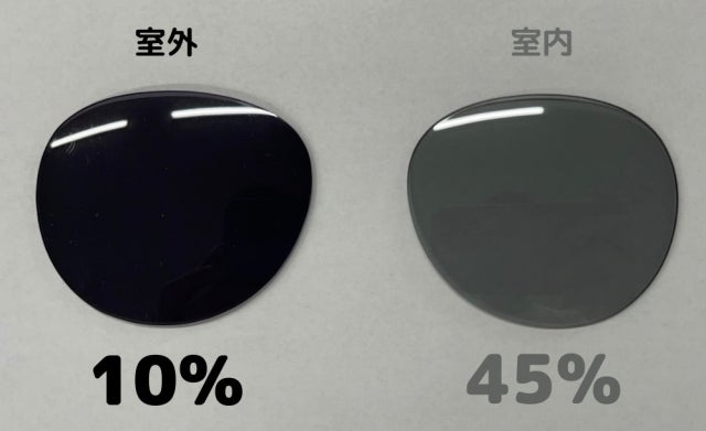 調光レンズとは、紫外線の量が多い場所ではレンズが濃い色に、紫外線の量が少ない場所では普通のメガネのようなクリアな色になる「紫外線の量によって、レンズの色(濃度)が変わるレンズ」です。