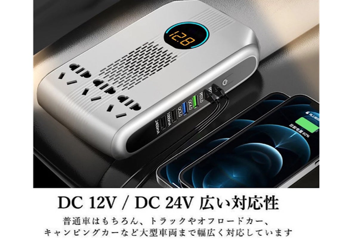 - DC12V/24VをAC110Vに変換、カーインバーター