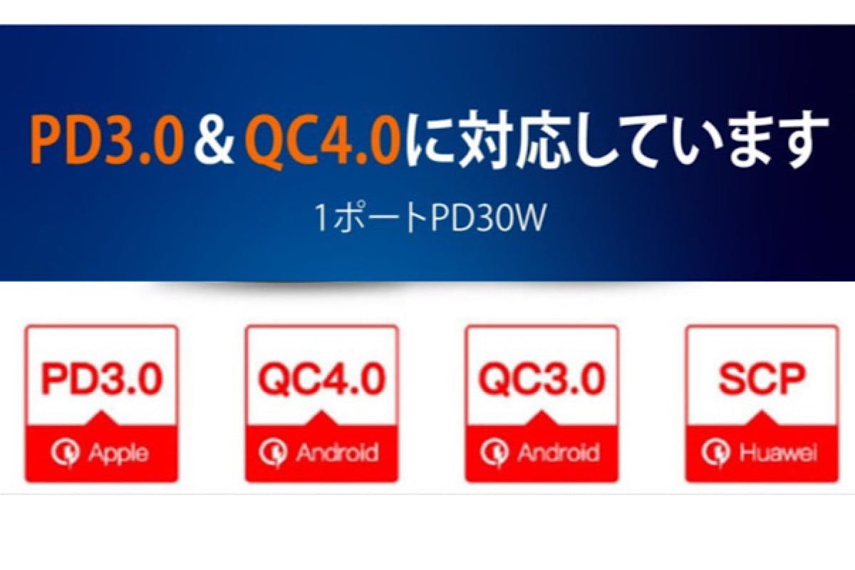 ○ QC3.0/4.0とPD3.0急速充電に対応、短時間でスマホやノートPCに充電可能!
