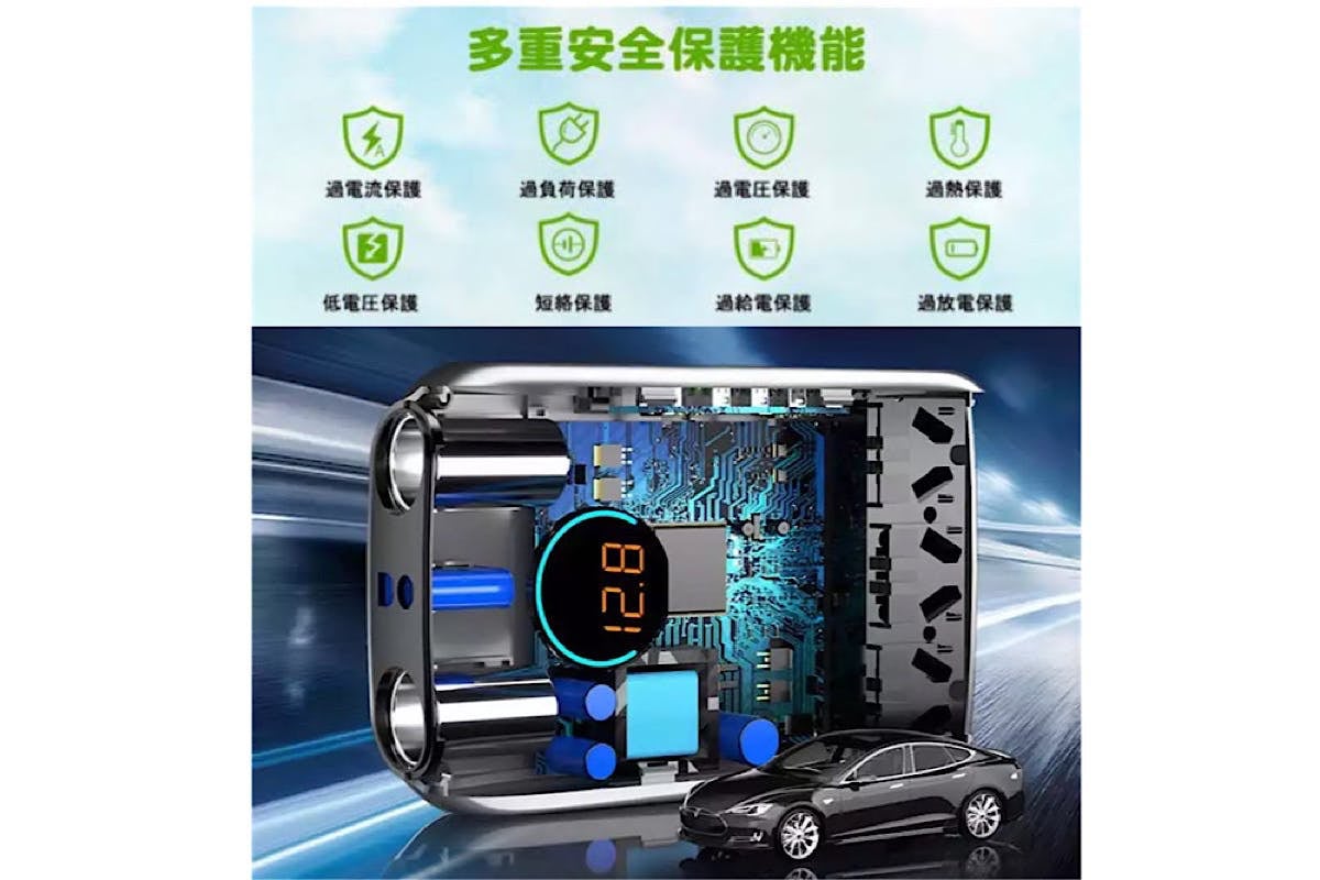 ○ 8つの安全保護機能搭載、車とデバイスの両方をしっかり守る!