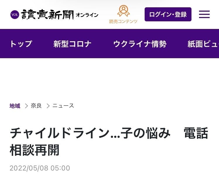 先月、読売新聞さんからインタビューを受けていたのですが、5月8日(日)の奈良版に、チャイルドラインさんの情報と共にアットリンク奈良が紹介されました。