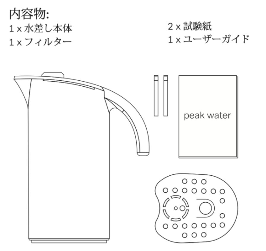 ・商品内容:水差し本体、フィルター、試験紙×2、ユーザーガイド