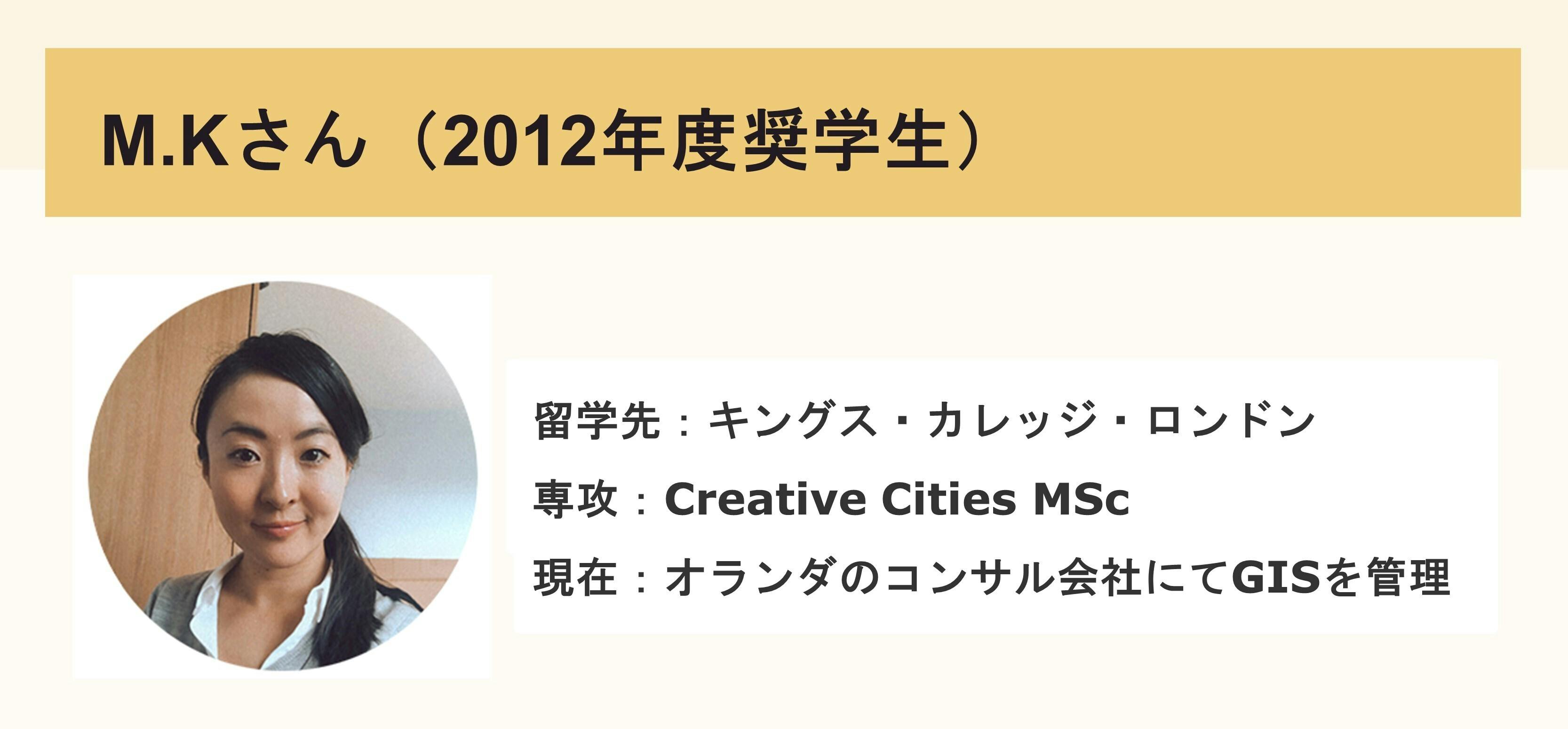 私にとって留学で得た経験は、現在の仕事に直結する非常に貴重なものでした。 国際機関で働いている今、世界で活躍できる日本人がいかに必要とされているかを痛感しています。また日本の文化や技術の素晴らしさ、優秀な研究者の業績が発信力の乏しさゆえに海外で知られていないことを非常に残念に感じています。発信力を高め、諸外国の優れた部分を取り入れることで日本は更に発展していけるはずですが、そのためにはまず志の高い留学生を増やすことがとても大事だと思います。 留学にはおける最大の障害は、かかる莫大な費用です。BCJの奨学金は、私にお金の心配をせず、存分に勉学に集中できる環境を整えてくれたのみならず、子供の頃から希望していた職業に就くきっかけを与えてくれました。